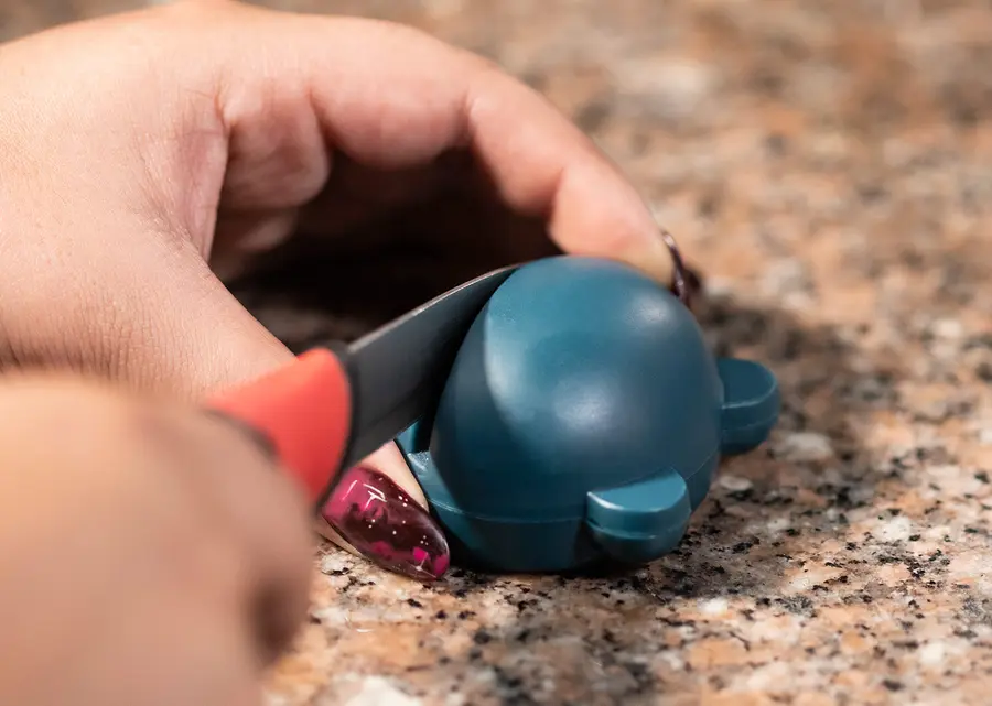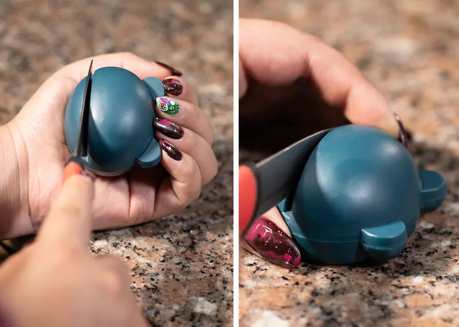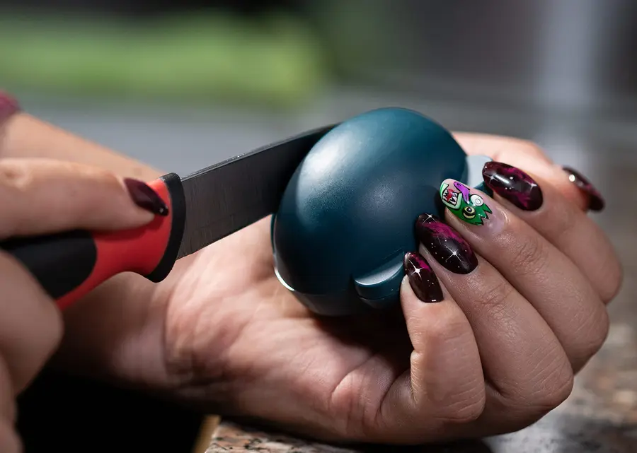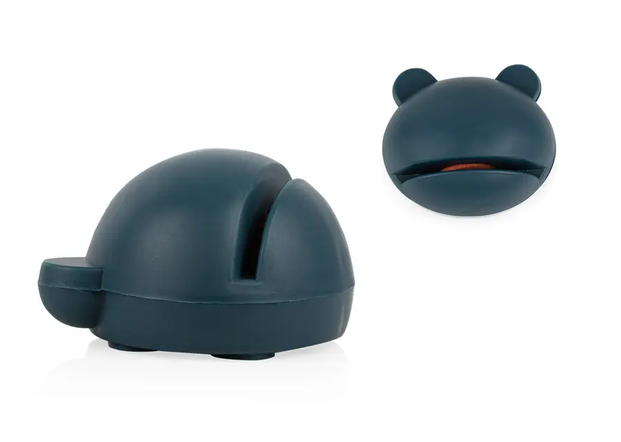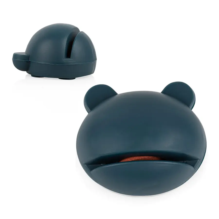 Afilador de cuchillos manual con forma de rana, contiene piedra para afilar cuchillos. Puede adherirse a una superficie.