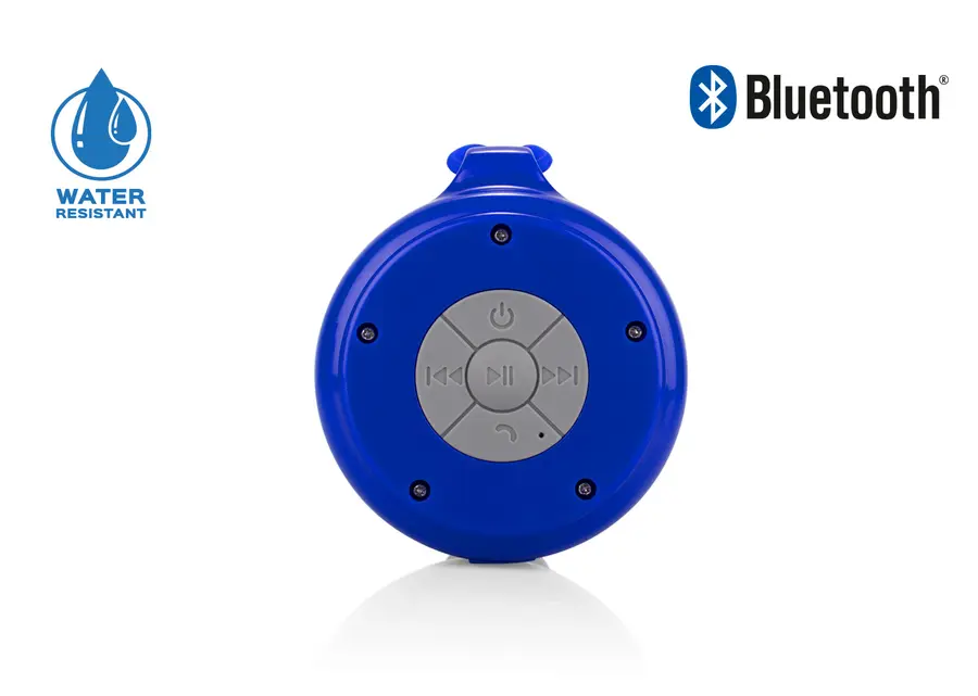 Altavoz bluetooth 3.0 resistente al agua novel IPX4, alcance de hasta 10 metros, batería de litio. Tiempo de trabajo aproximadamente 4 horas. Tiene colgante con chupa ideal para ducha.
