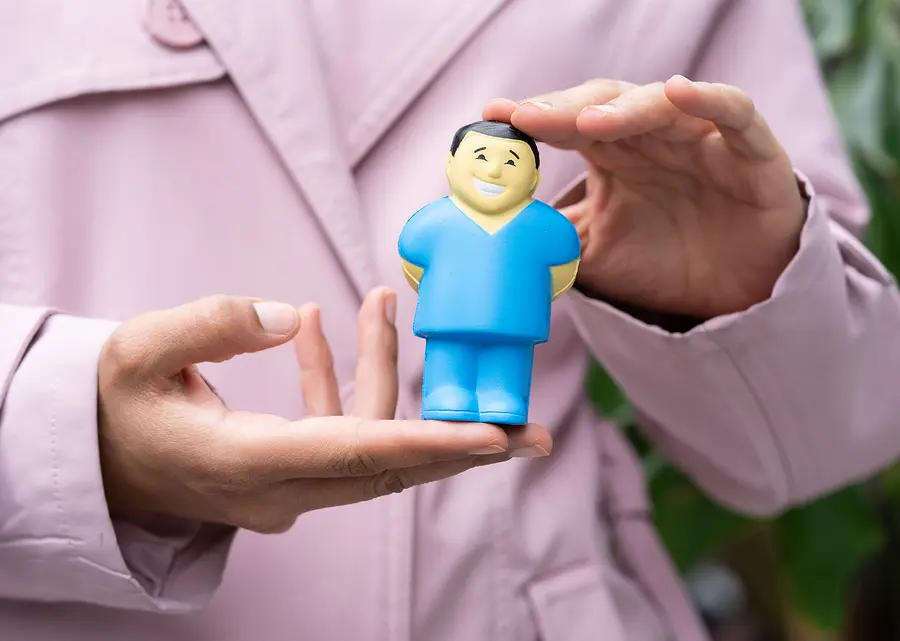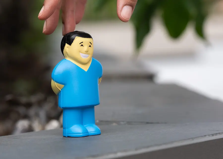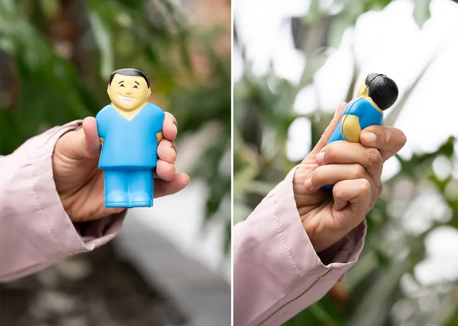 Artículo antiestrés con forma de enfermero para aliviar la tensión.
