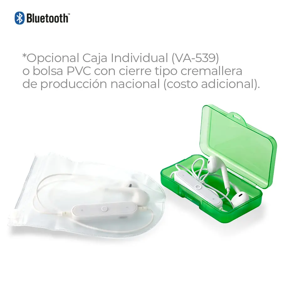Opcional Caja Individual (VA-539) o bolsa PVC con cierre tipo cremallera de producción nacional (costo adicional).