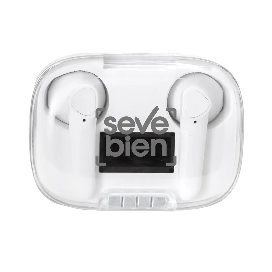 Sonido nítido, sin cablesAudífonos Bluethooth. Pantalla digital y tapa transparente. Rango de alcance: 15 metros. Tiempo de reproducción: aprox. 3 horas. Tiempo de Carga: 1 hora Duración de la carga en inactividad: 200 horas. Cable de carga USB tipo C en color blanco para audífonos blancos, y en color negro para la versión en negro. Medidas: 6 x 4,5 x 2,5 mm. Material: Plastico ABS. Versión Bluetooth: 5.1 Capacidad Batería: 30 mAh para cada auricular. Capacidad Batería caja de carga: 250 mAh Presentación: en caja de regalo blanco mate para audífonos blancos y en caja de regalo negro mate para audífonos negros.