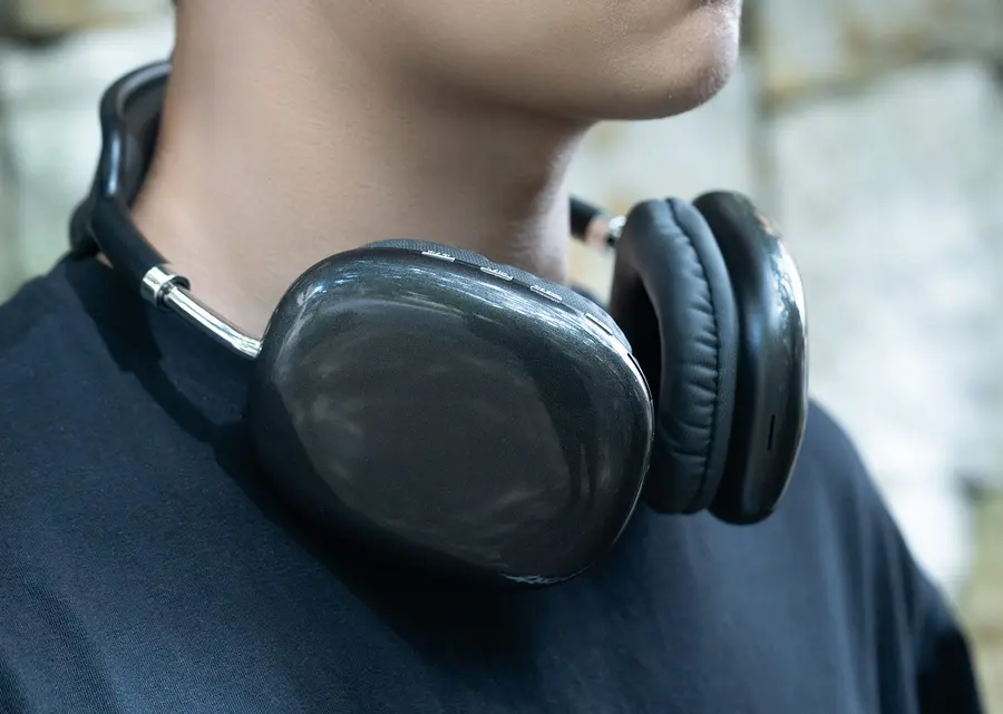 Audífonos Bluetooth 5.3, conector AUX para cable 3.5 mm, compatible con tarjeta TF y radio FM. Tiempo de uso aproximadamente 8 horas, puerto de carga Tipo C. Distancia de trabajo hasta 10 metros.