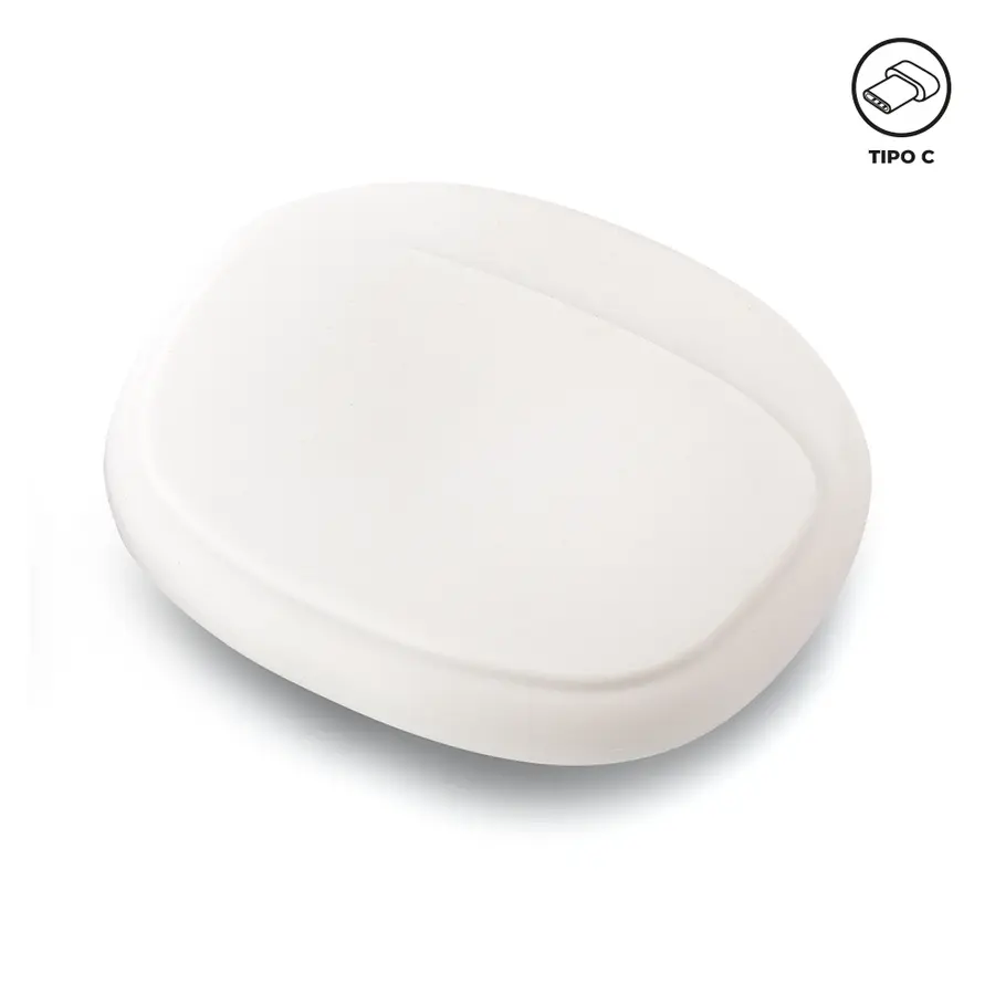 Audífonos plásticos con conexión Tipo C en estuche de silicona.