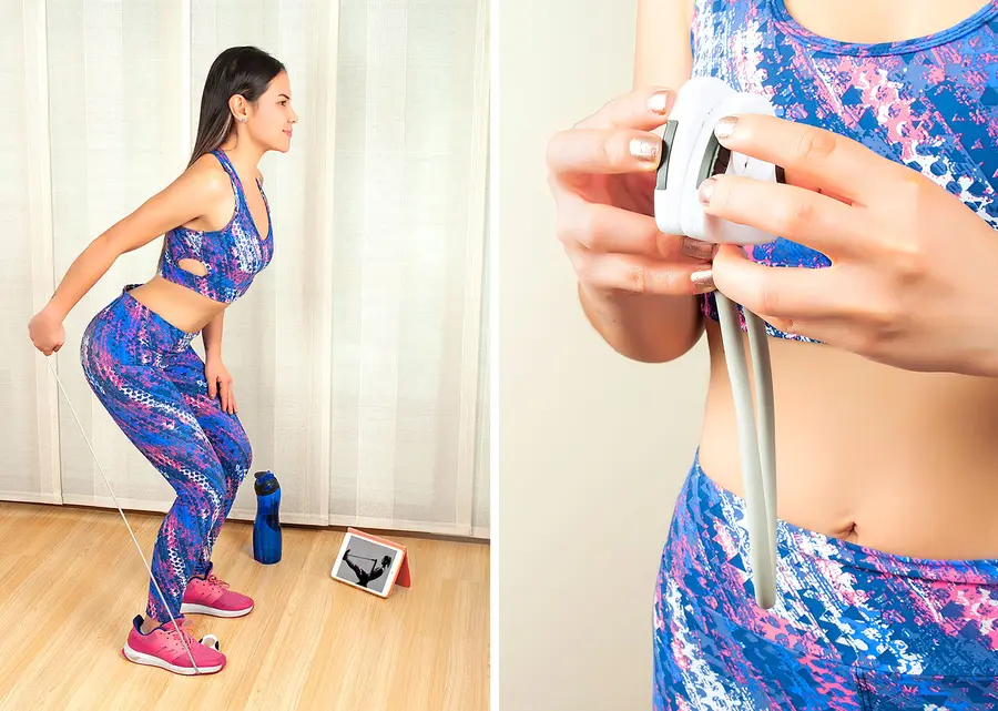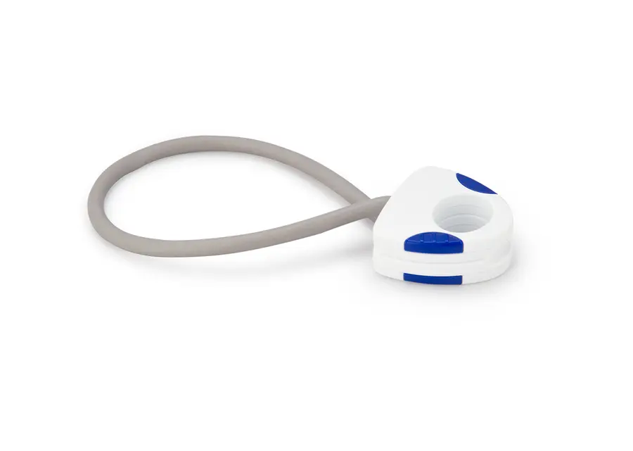 Banda elástica ideal para hacer entrenamiento fitness o de resistencia, con manijas para mejor agarre y sistema de apertura twist para separarlas, largo de la banda extendida 48 cm.