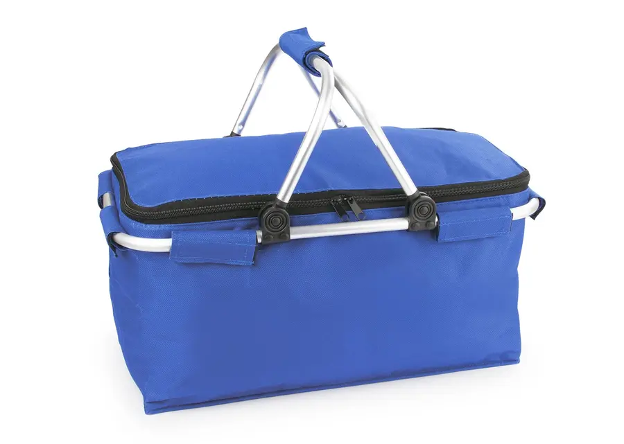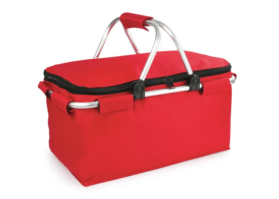 Canasta con agarraderas en aluminio, revestimiento en aluminio, especial para disfrutar del campo en un agradable picnic con la familia o amigos en días de sol. Diseño práctico de utilizar.