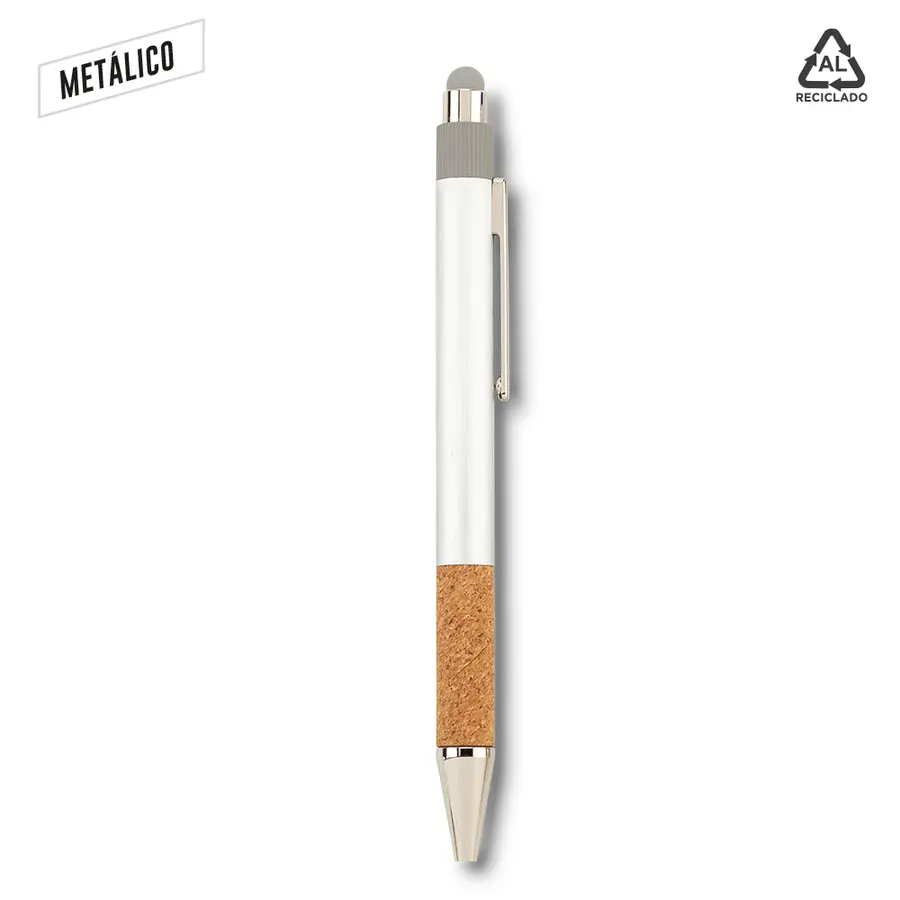 Bolígrafo en aluminio reciclado. Con grip en corcho. Mecanismo push.