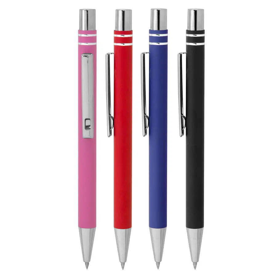 Elegancia en cada trazoBolígrafo retráctil. Tinta gel. Cuerpo metálico en diferentes colores acabado mate. Clip metálico, puntera y pulsador metálicos. Medidas: 14 cm. Materiales: Aluminio, ABS y acero. Peso: 16 g. Tinta: negra.
