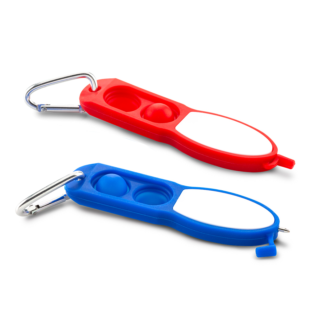 Bolígrafo antiestrés en silicona, con carabinero para cargar.