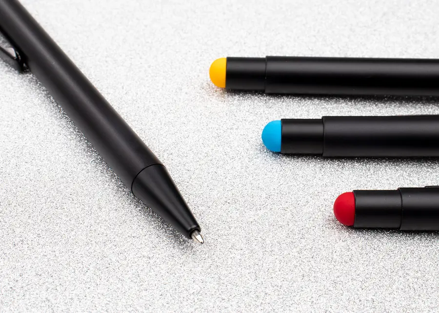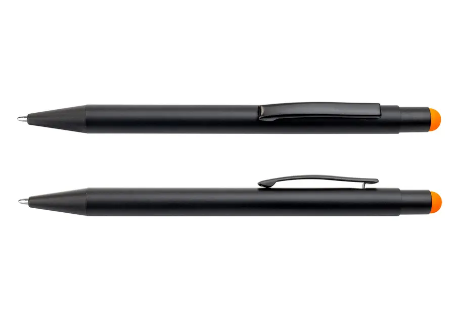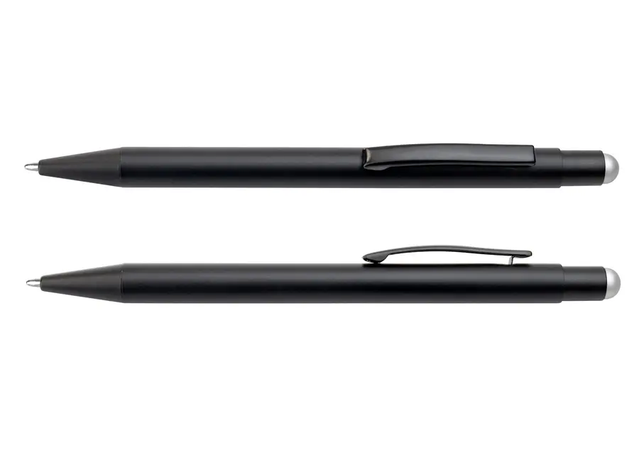 Bolígrafo Aluminio con sistema de apertura retráctil, touch en la parte superior, al realizar la marca la mostrara en el mismo color del touch, (se sugiere con láser fibra y debe calibrarse la maquina)