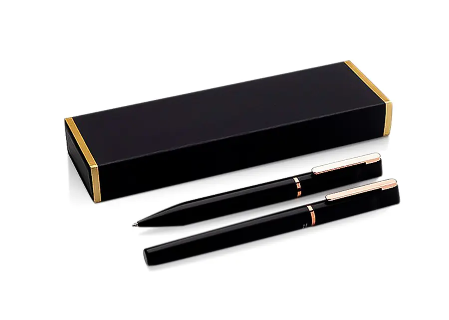 Juego de Bolígrafo de metal de aluminio reciclado más un Bolígrafo rollercon mecanismo de apertura, almacenados en caja. (Bolígrafo/Esfero)