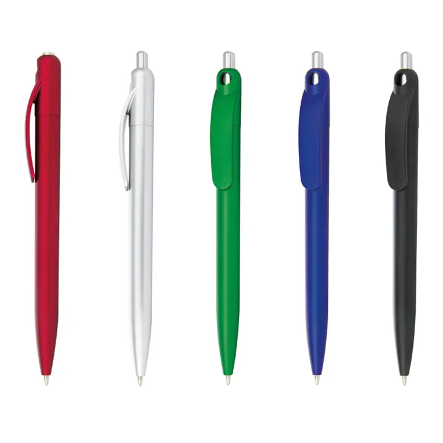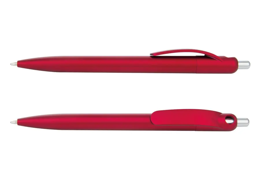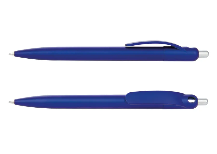 Bolígrafo plástico con acabado mate y sistema de apertura retráctil.
