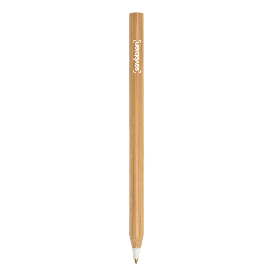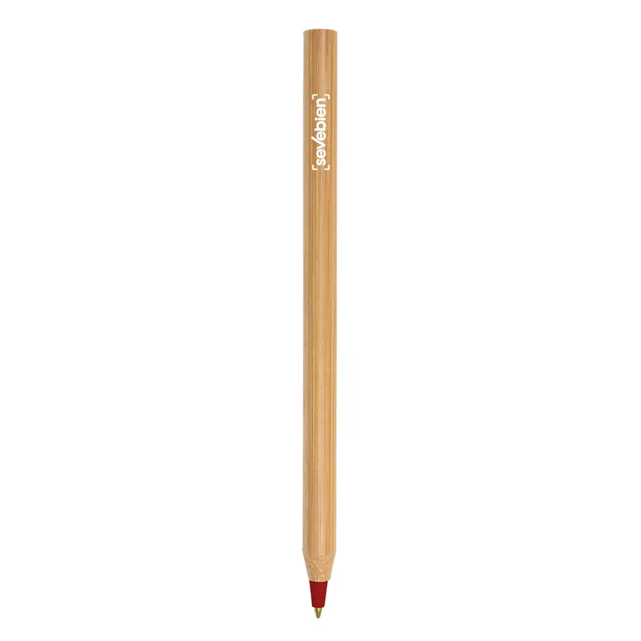 Bolígrafo con cuerpo de bambú y punta plástica de diferentes colores. Tinta Negra.