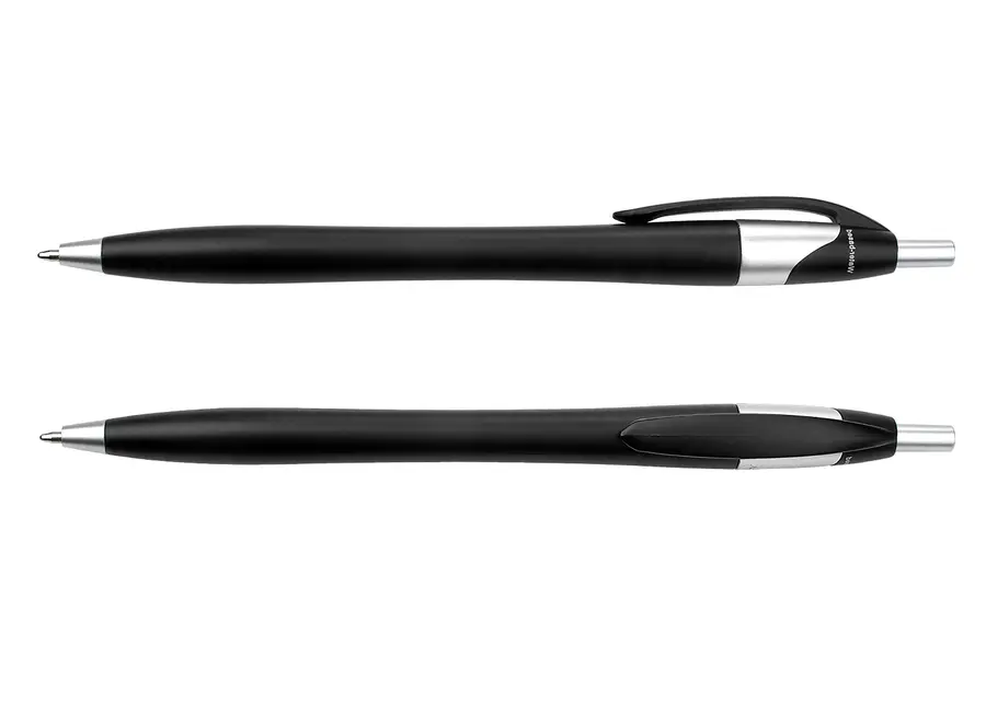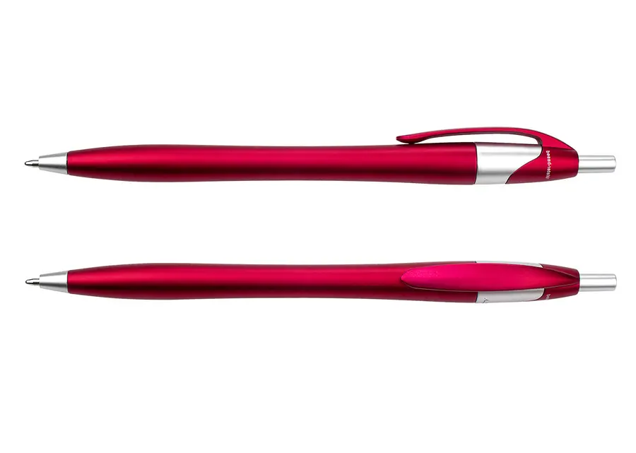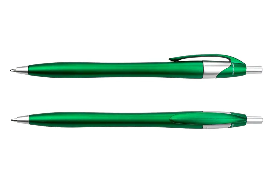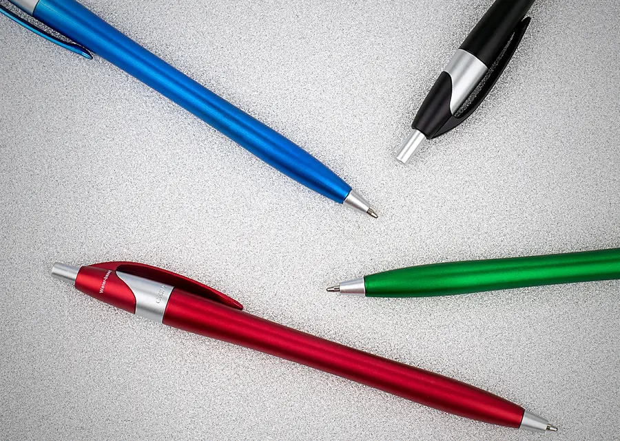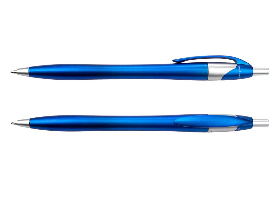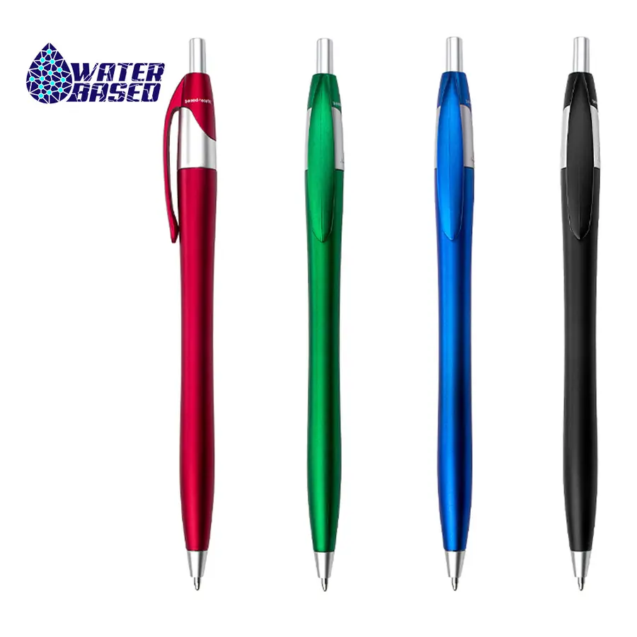 Bolígrafo con sistema de apertura retráctil. al momento de la fabricación utiliza tecnica de pintura Water Based
