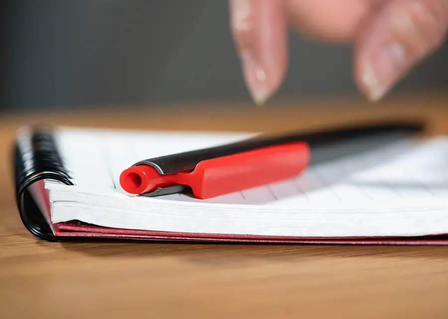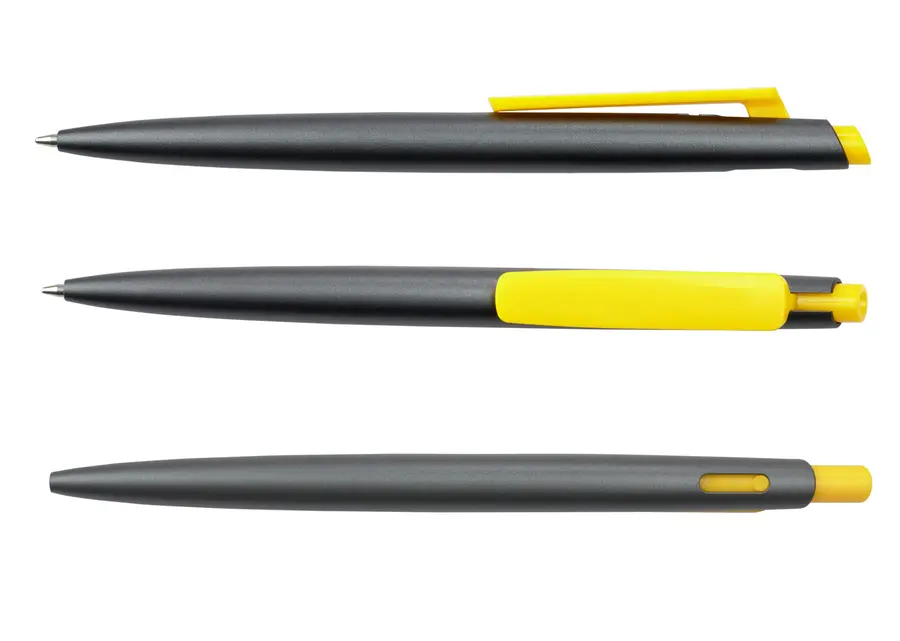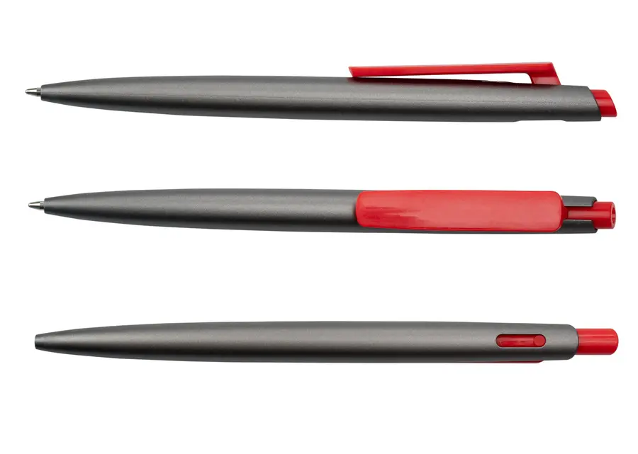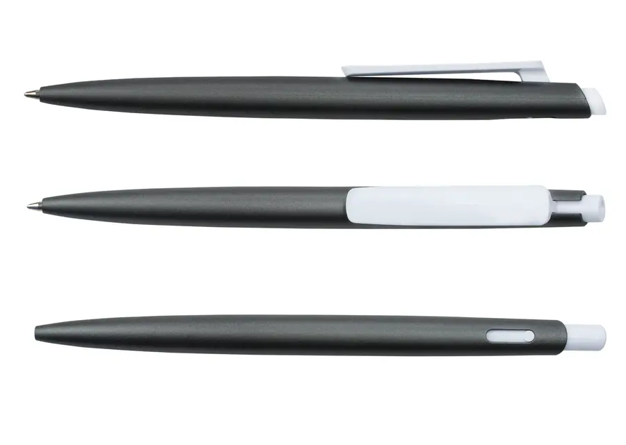 Bolígrafo de plástico con acción rápida y diseño moderno. Fabricado en RABS con acabado mate, cuenta con clip y parte superior en color liso. Incorpora un recambio fino de plástico para una escritura ágil y precisa. (Bolígrafo/Esfero)