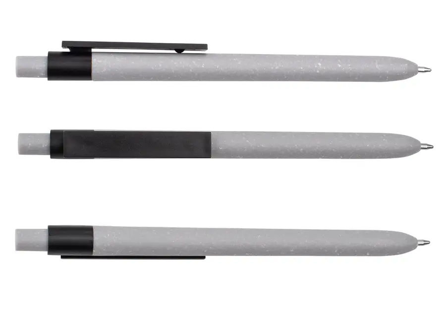 Bolígrafo de plástico con pulsador, diseño uniforme y resistente. Cuerpo, clip rectangular y botón elaborados en material de carcasa gris sólido. Incorpora recambio plástico tipo cruz para una escritura fluida y confiable. (Bolígrafo/Esfero)