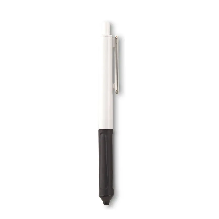 Bolígrafo plástico con grip en silicona. Mecanismo push.