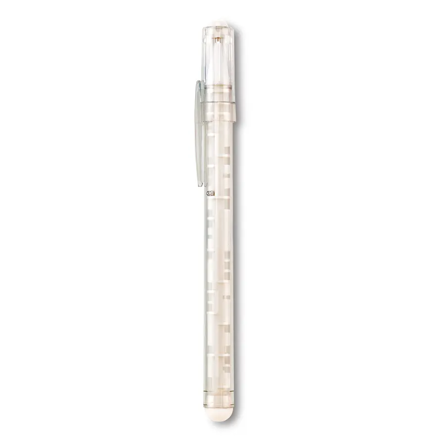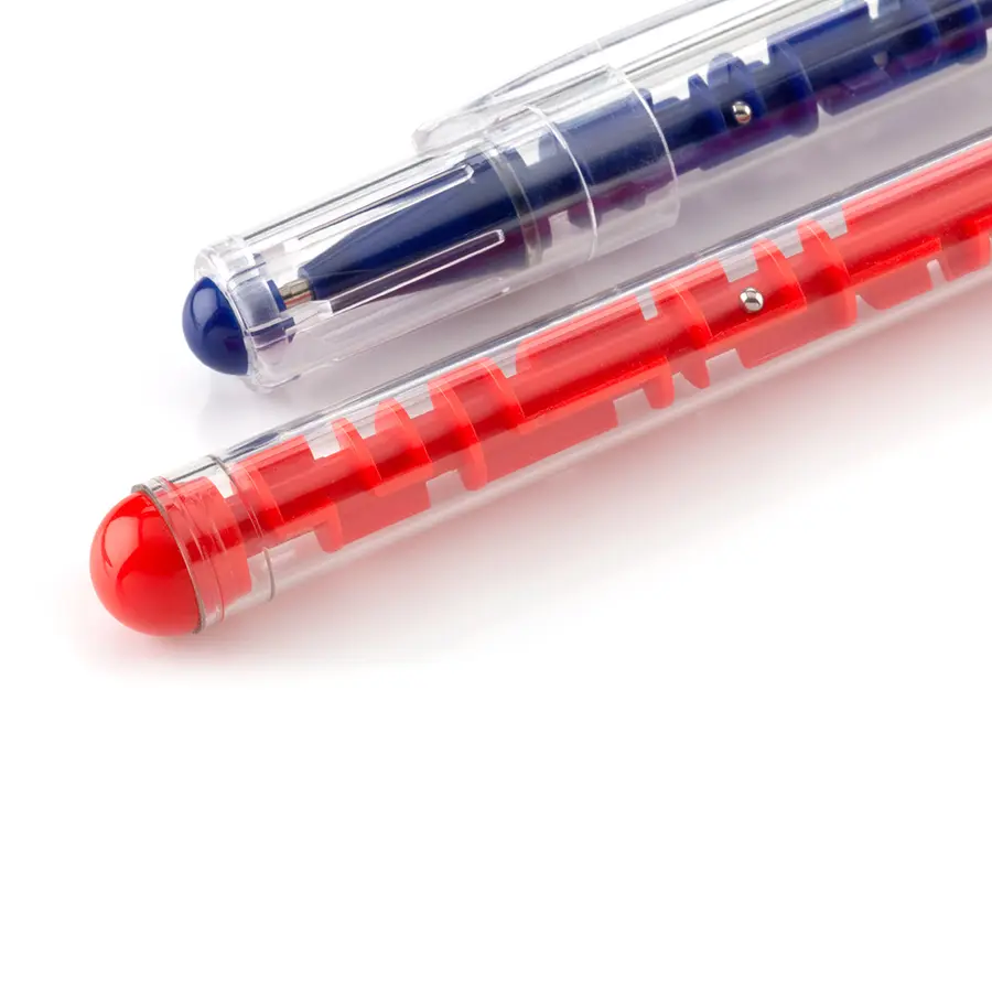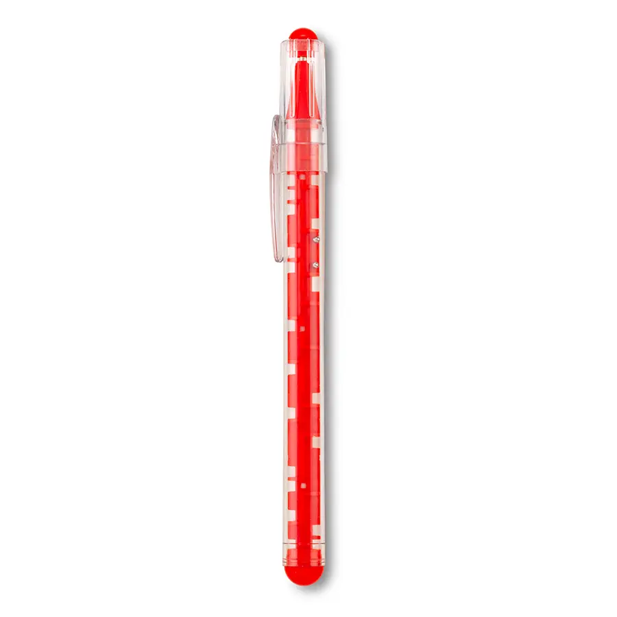 Bolígrafo plástico con tapa y barril con laberinto.