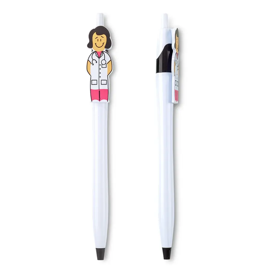 Bolígrafo plástico con clip de doctor, doctora o cirujano.