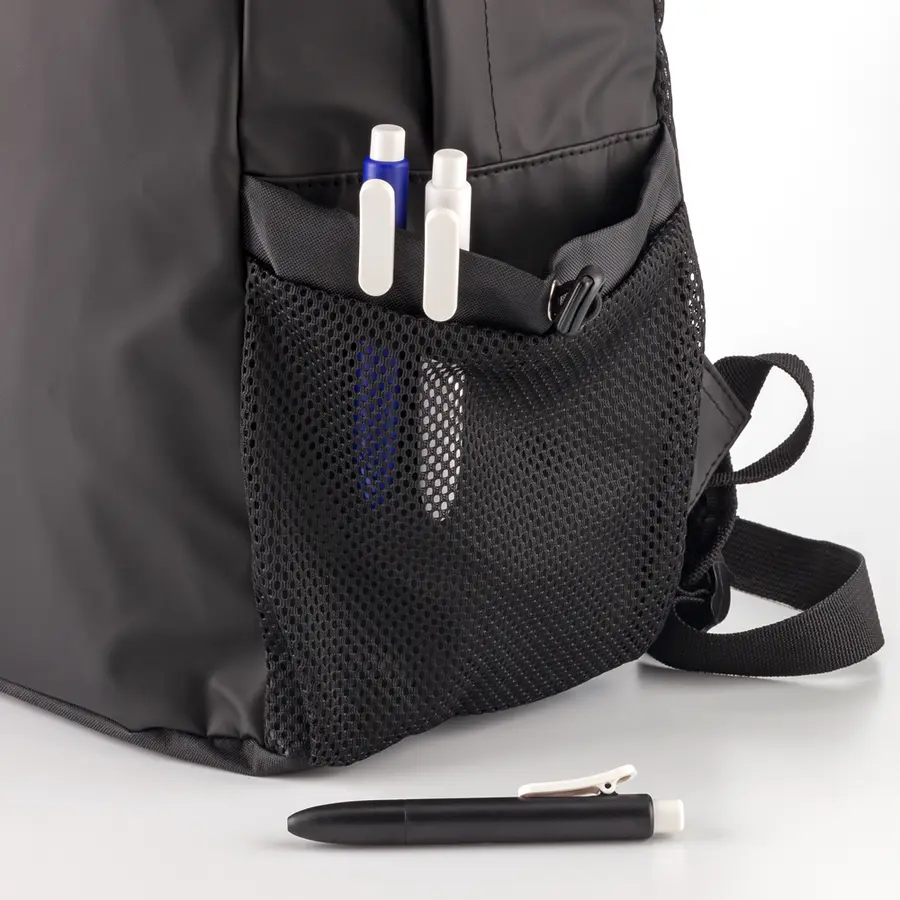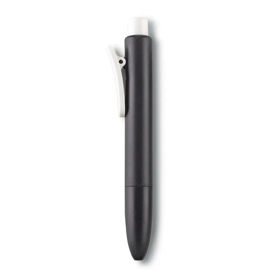 Mini bolígrafo plástico, mecanismo push, clip sujetador.