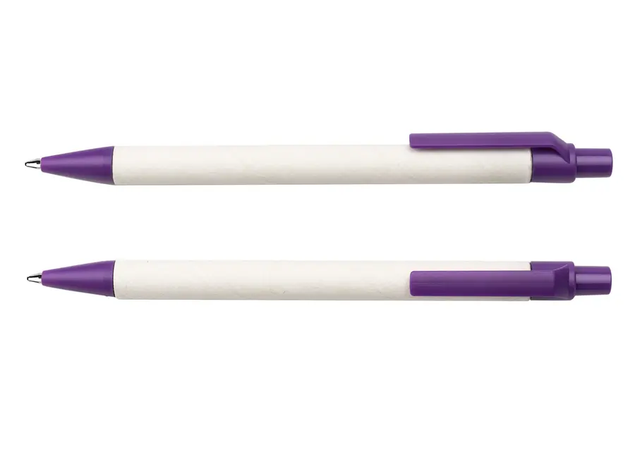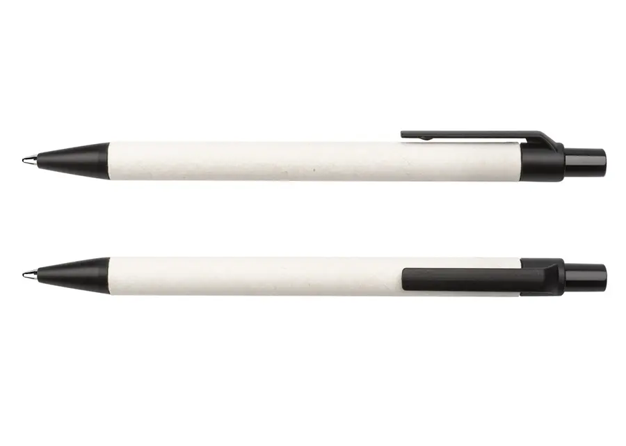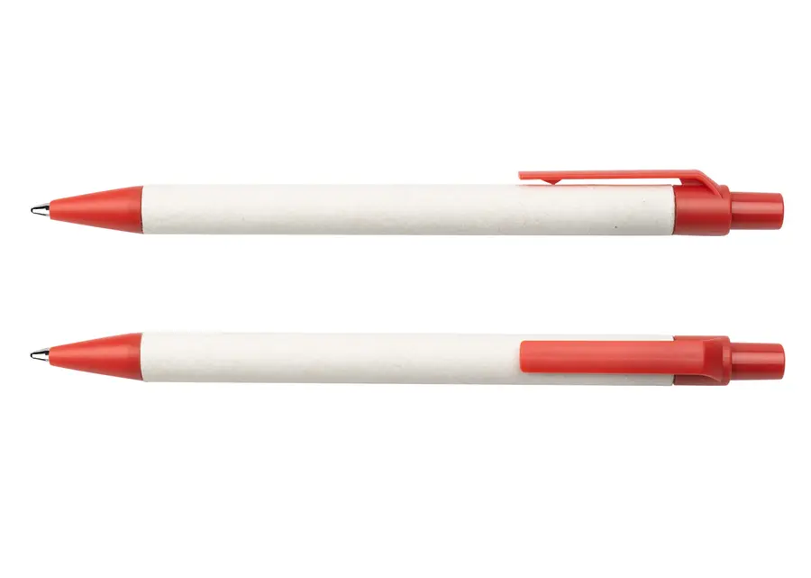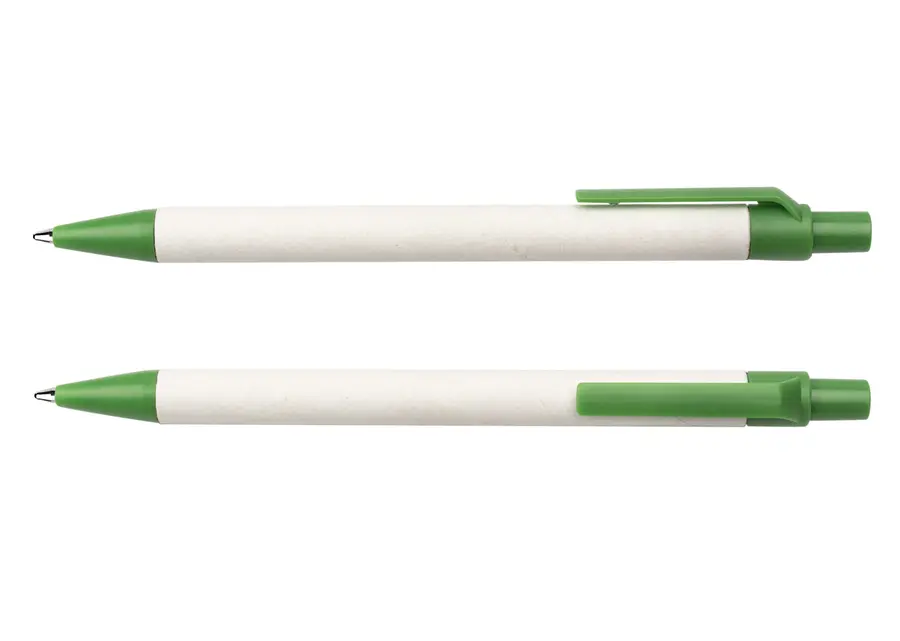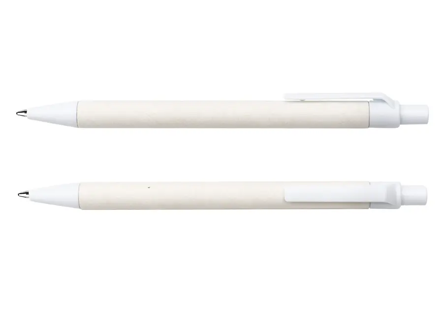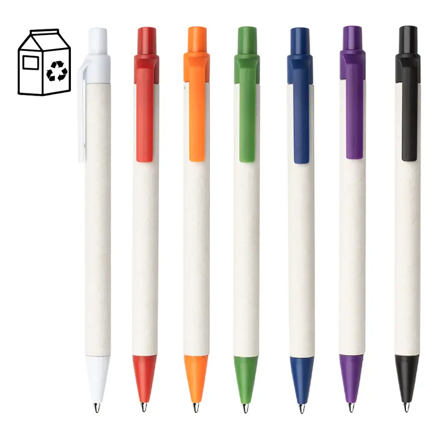 Bolígrafo elaborado en material recuperado de cajas Tetra Pak. Clip y punta plásticos. Sistema retráctil.