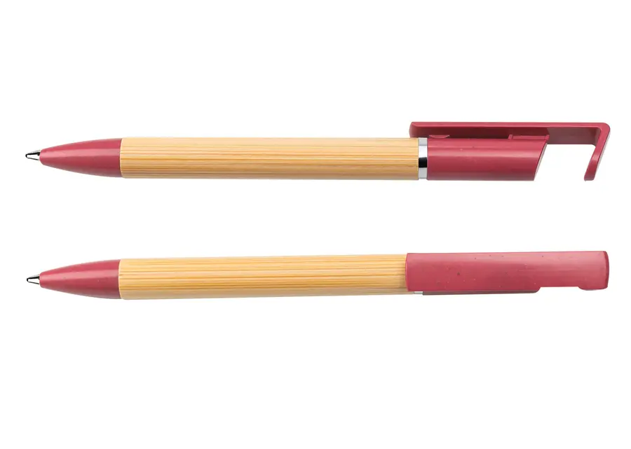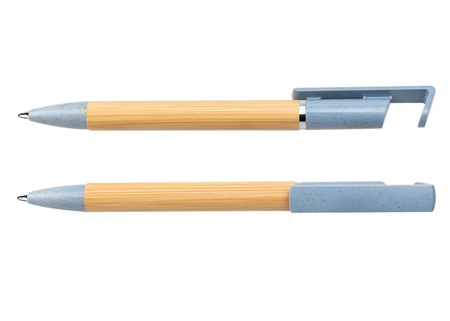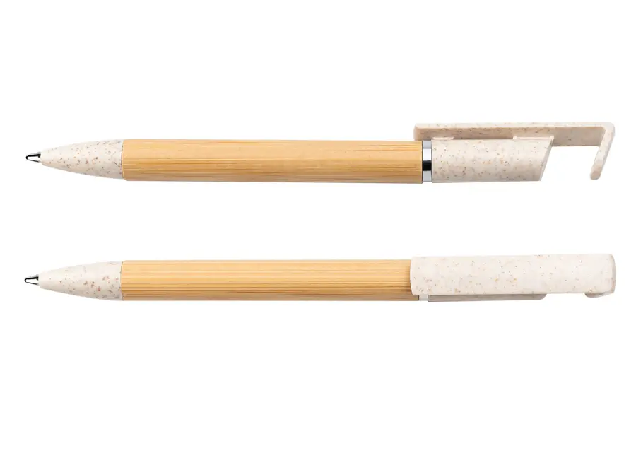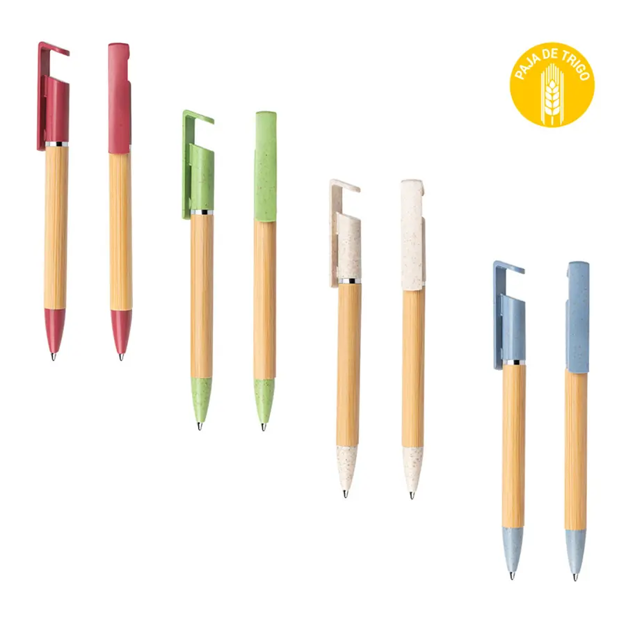 Bolígrafo ecológico diseñado con pequeño sistema de soporte para el celular. Sistema de apertura twist.