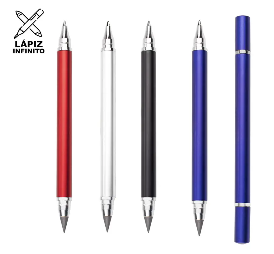 2 en 1 Bolígrafo y lápiz eterno con cuerpo de color metálico y detalles cromados. (Bolígrafo/Esfero)