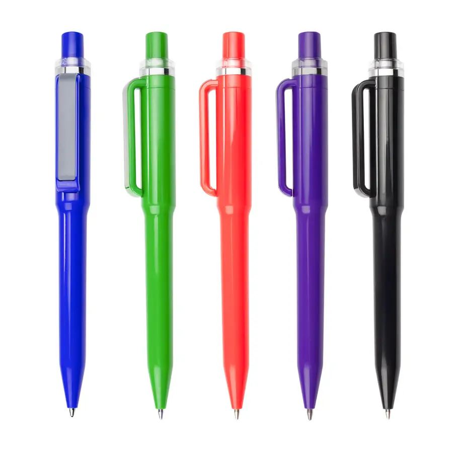 Bolígrafo plástico de color sólido, clip de inserción con borde gris. Sistema retráctil. (Bolígrafo/Esfero)