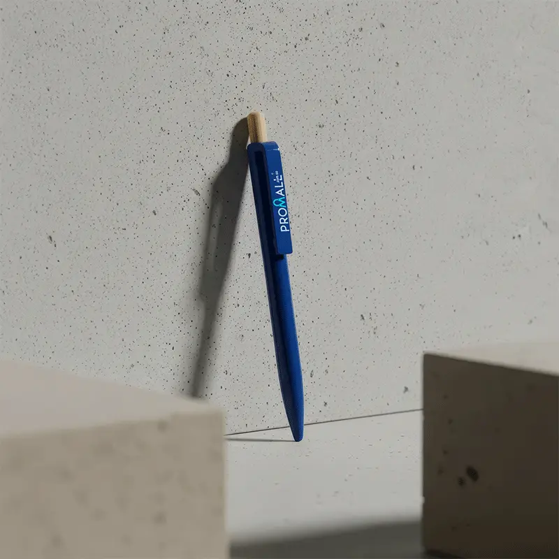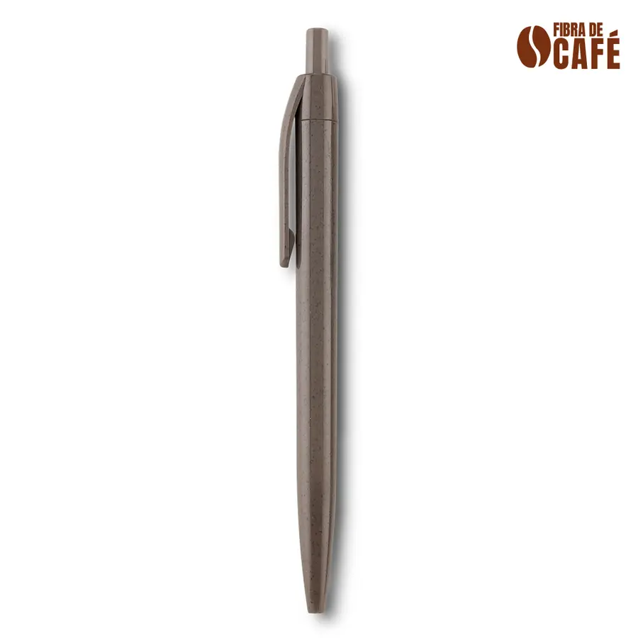 Bolígrafo plástico elaborado con fibra de café (50% fibra de café). El porcentaje de material ecológico tiene un promedio de biodegradabilidad de 2-3 años después del fin de su vida útil. Mecanismo push.