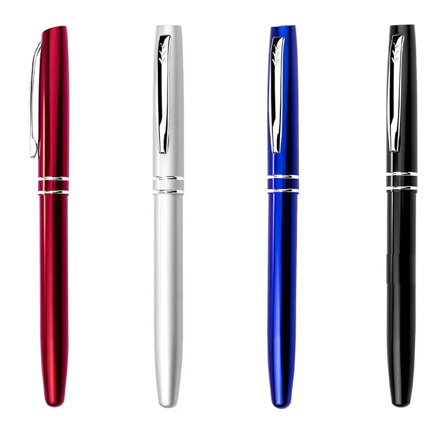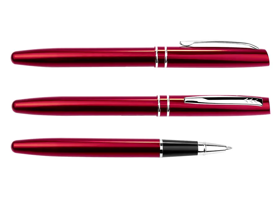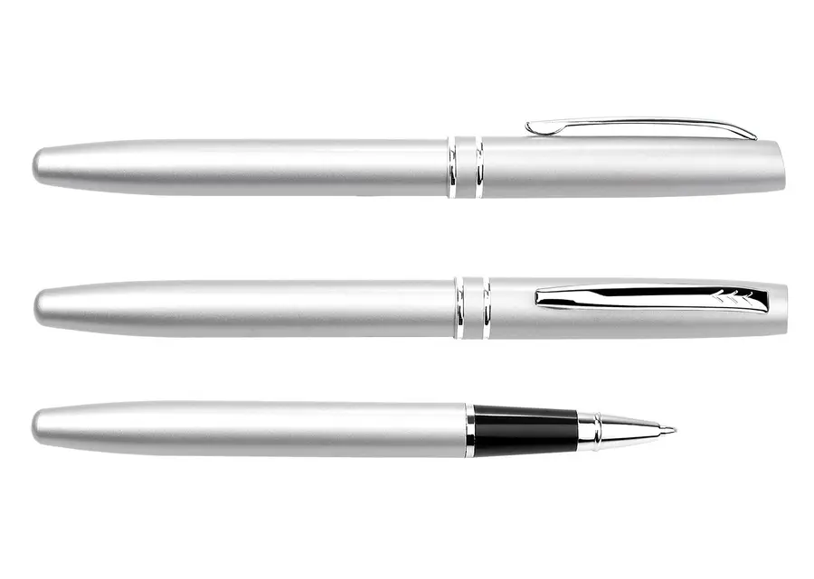 Bolígrafo en Aluminio color metalizado con tapa a presión, clip Metálico, Diseño con anillos metalizados en la mitad.