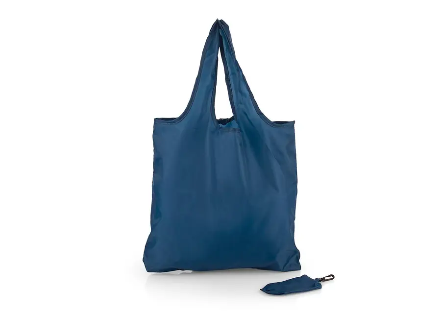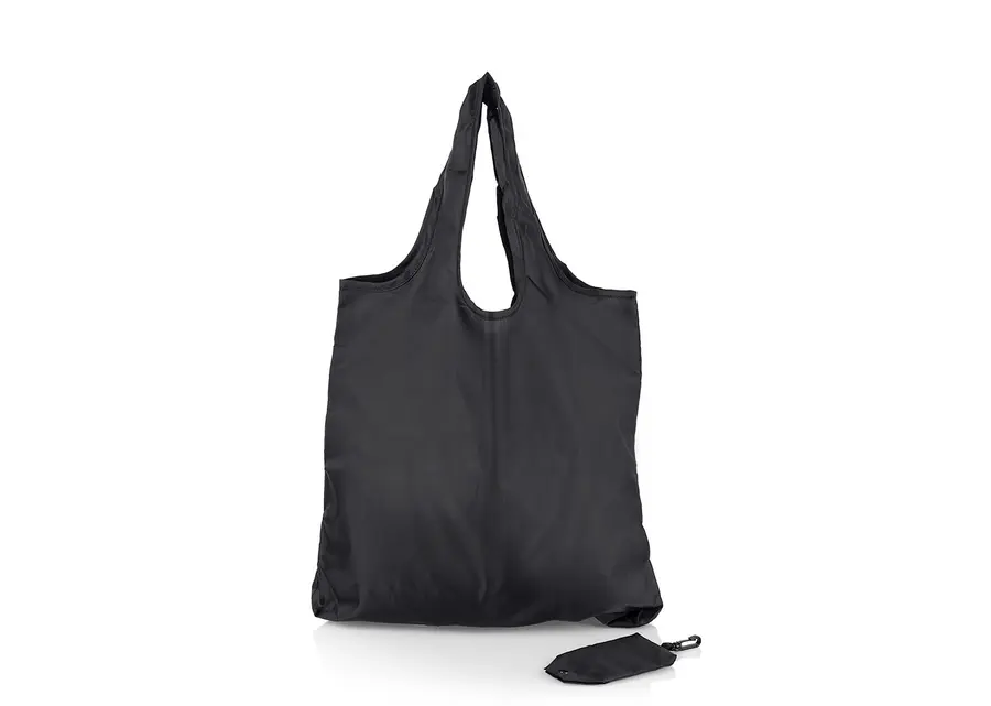 Bolsa plegable con argolla interior y estuche de 7 x 12,5 cm con cierre en broche y carabinero plástico práctico para llevar la bolsa plegada con otros accesorios.