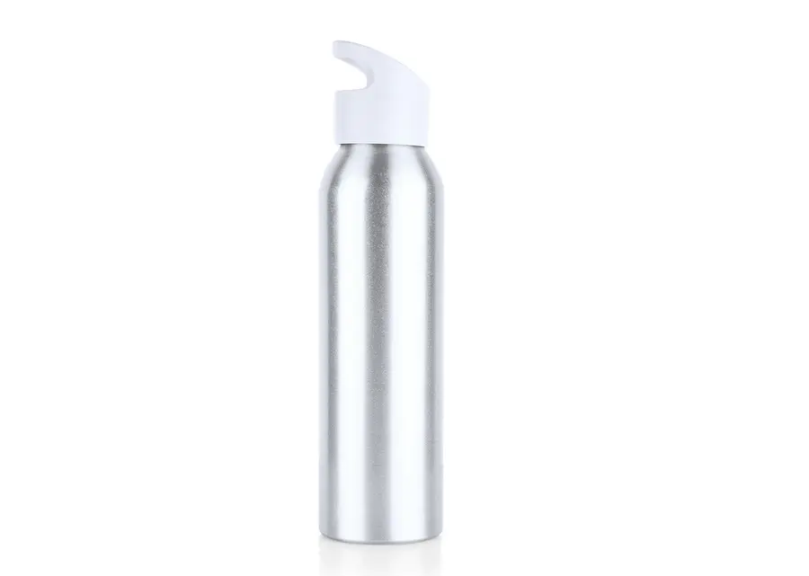 Botella en aluminio con tapa rosca plástica y manija plástica incorporada para transporte. Capacidad 650ml. Temperatura recomendada de 10 °C a 100 °C.