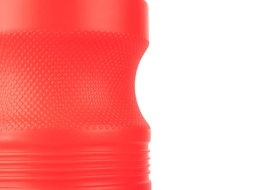 Botella deportiva con tapa de cierre giratorio y boquilla que funciona bajo presión, ideal para mantenerse hidratado durante actividades físicas. Su diseño incluye textura en el agarre que mejora la sujeción y comodidad al usarla. Práctica y funcional para llevar al gimnasio, entrenamientos, salidas al aire libre o como carimañola en la bicicleta, gracias a su tamaño y forma compatibles con los portabotellas estándar. Capacidad: 850 ml / 29 Oz.