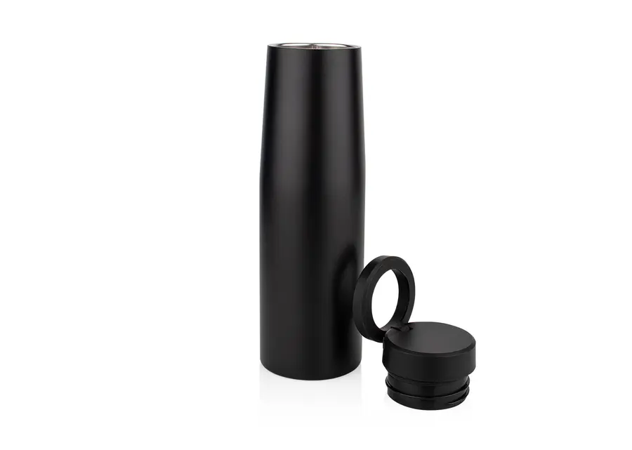 Termo con tapa de cierre giratorio, tecnología MagSafe (Ø 5,6) y doble pared de acero inoxidable. Su tapa permite colocar el celular en posición horizontal o vertical gracias al soporte magnético integrado. Capacidad: 540 ml / 18 Oz.