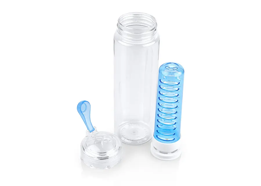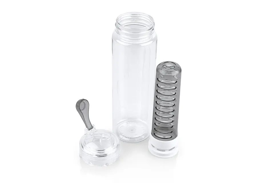 Botella deportiva con boquilla de cierre a presión, tubo de filtro en el centro ideal para hacer infusiónes. Capacidad 700 ml / 24 Oz