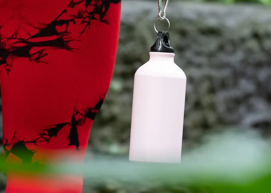 Botella de aluminio con gancho carabinero y tapa roscada. Está libre de BPA y otras sustancias nocivas, no retiene ni transmite sabores. La pintura exterior no tiene ningún tipo de componente tóxico. Tiene una capacidad de 500 ml (17 oz).