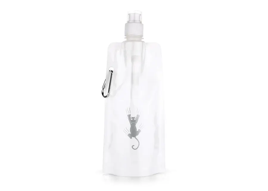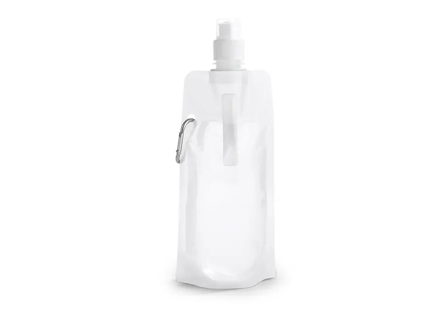 Botella flexible con tapa rosca y boquilla a presión. Incluye mosquetón para fácil transporte. Capacidad 450 ml / 15 Oz.