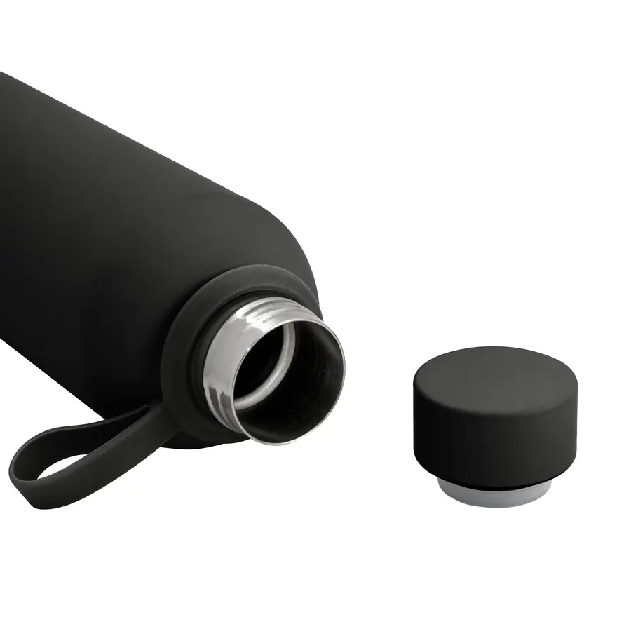 Tus bebidas a la temperatura perfecta por horas.Botella doble pared, sellada al vacío. Interior de acero 304 y exterior de acero 201. Tapa a rosca de acero 201, interior plástico con anillo de silicona. Asa de silicona para un transporte fácil. Pintura con terminación suave al tacto. Mantiene hasta 6 hs la temperatura de las bebidas calientes y 12 hs de las bebidas frías. Medidas: Ø 7,2 x 21,5 cm. Capacidad: 480 ml. Materiales: Acero inoxidable, polipropileno y silicona. Presentación: en caja de regalo kraft.