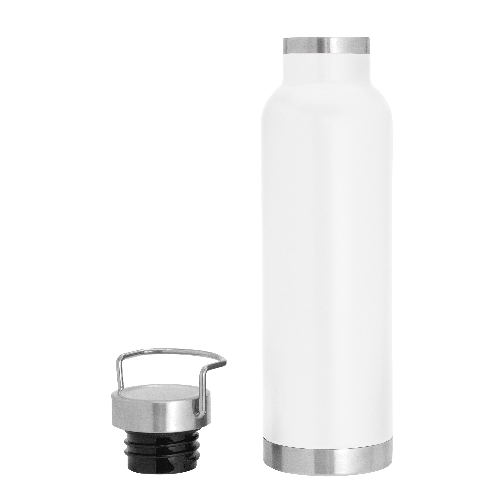 Ø 7,3 x 26 cm. Capacidad 650 ml. Acero inoxidable. Botella con aislamiento térmico vacuum. Interior en acero 304 y exterior en acero 201. Tapa de acero a rosca con manija rebatible metálica . La medida de este termo es tan practica que con el tendras el liquido necesario para estar hidratado en el momento del día que elijas. Mantiene hasta 12 hs la temperatura de las bebidas calientes y 24 hs de las bebidas frías. Presentación en caja de regalo.