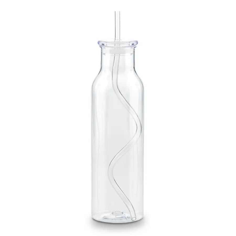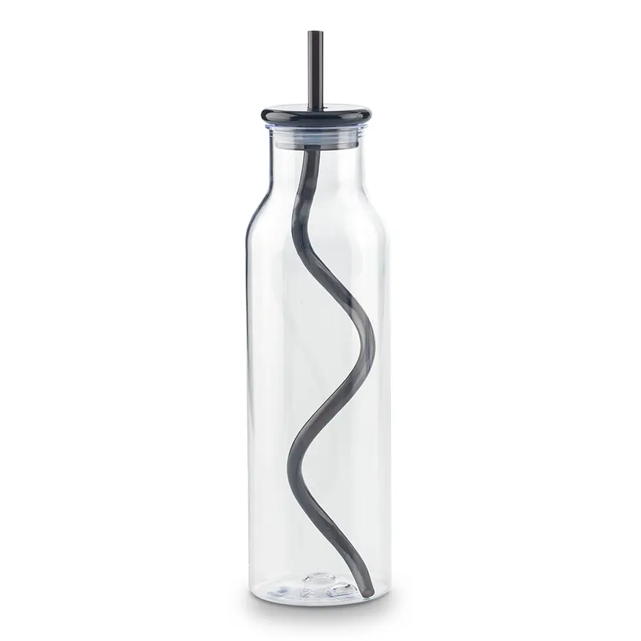 Botilito plástico en AS, con tapa plástica. Incluye pitillo plástico en espiral.