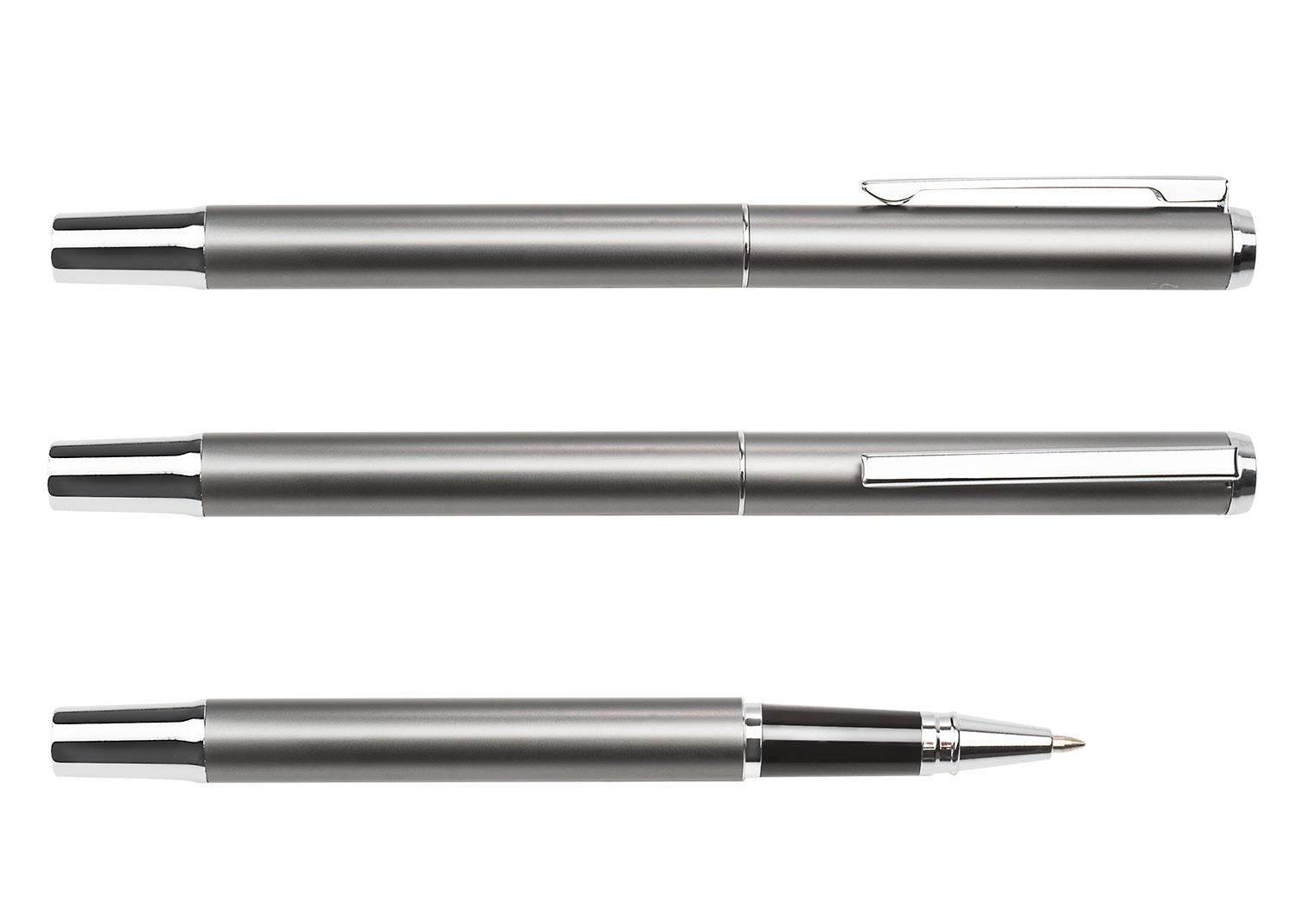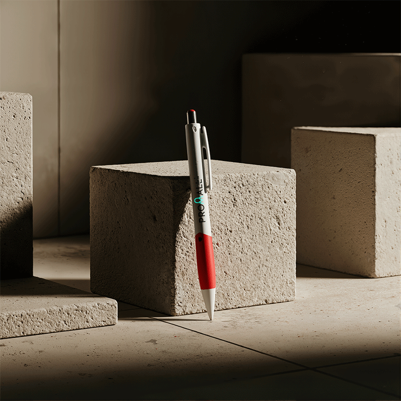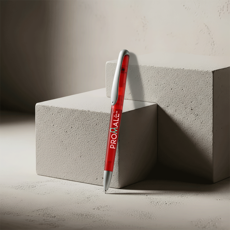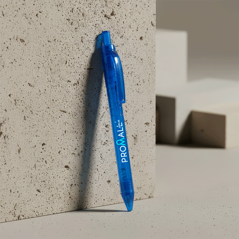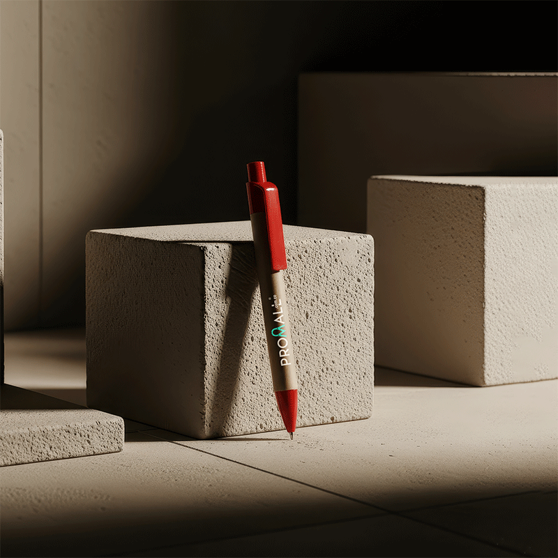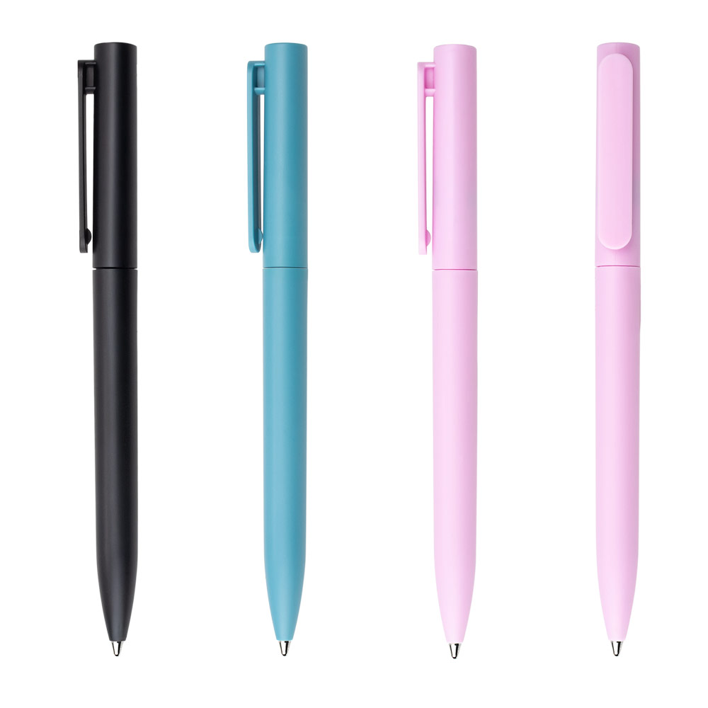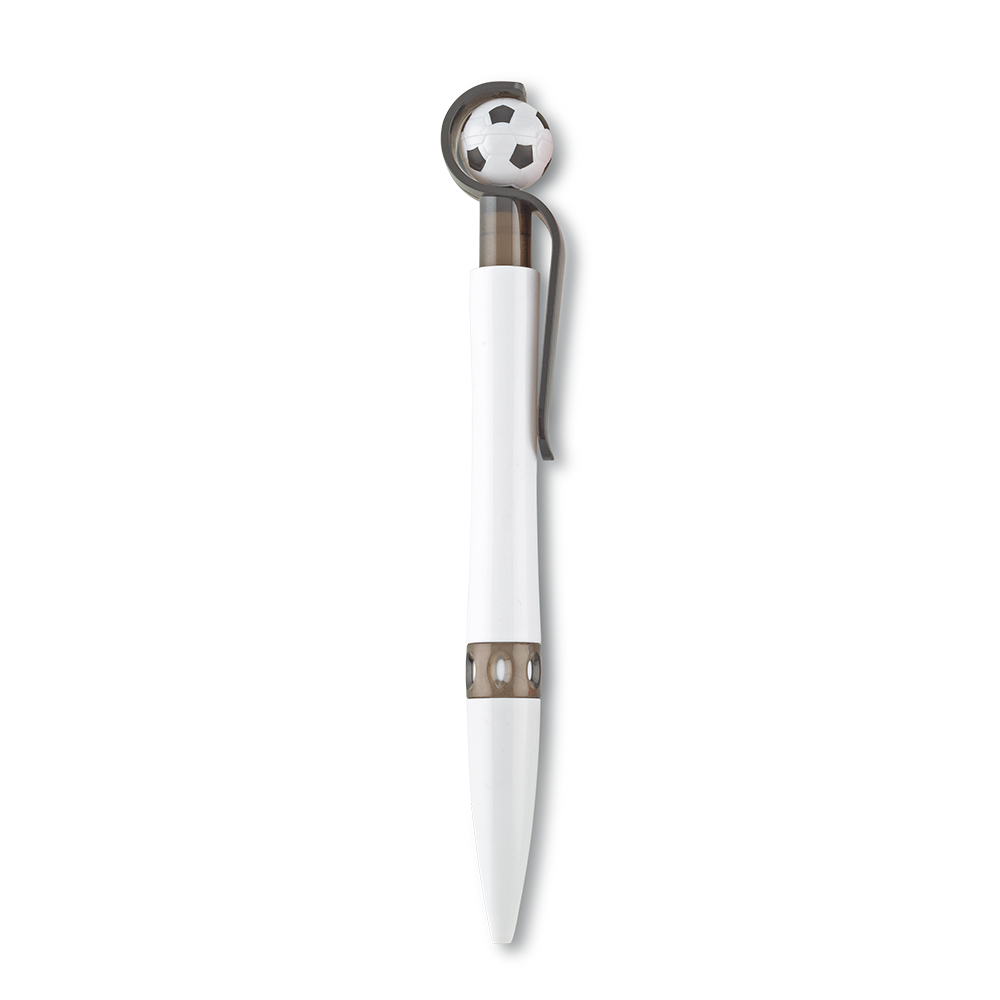 Bolígrafo plástico con clip metálico.