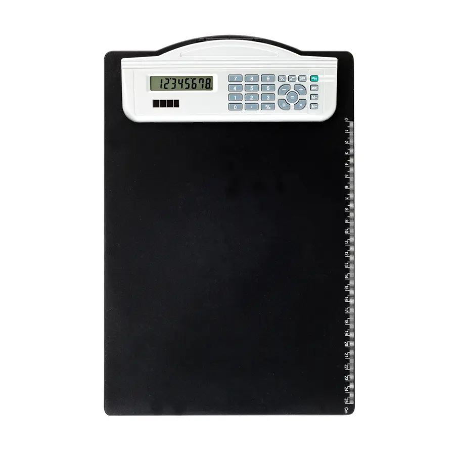 Tabla para anotar con calculadora solar 8 dígitos. Regla lateral 25 cm.