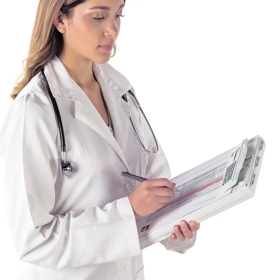 Tabla para anotar con calculadora solar 8 dígitos. Regla lateral 30 cm. Con compartimento protector de hojas y soporte para bolígrafo. No incluye block, ni bolígrafo.