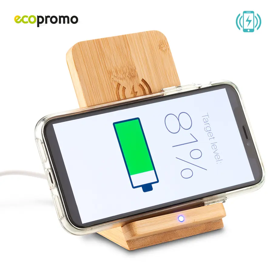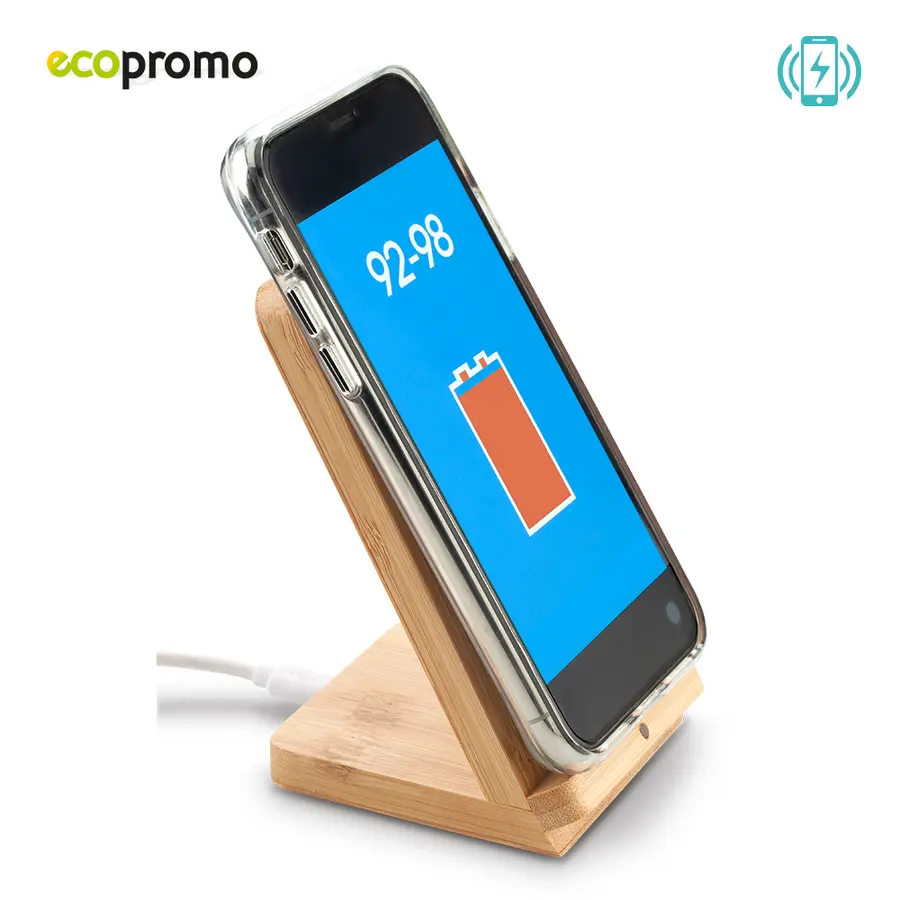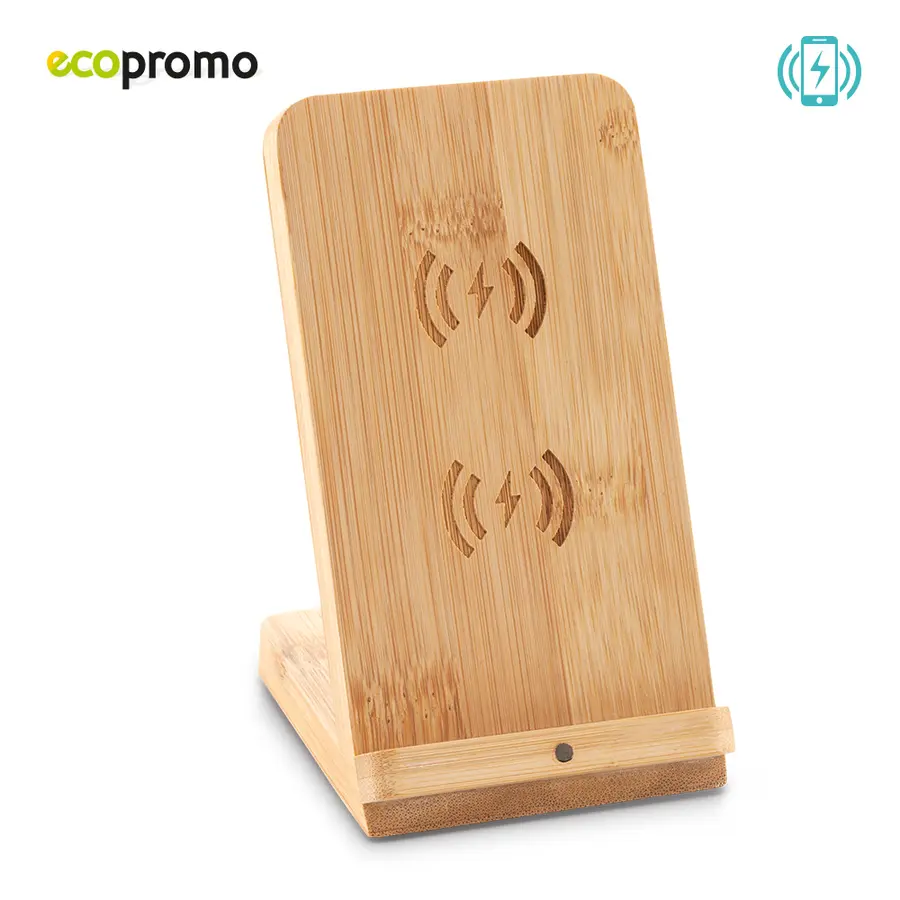 Cargador inalámbrico de 5W elaborado en bambú, permite carga inalámbrica vertical u horizontal en los dispositivos compatibles. Se sugiere su uso con dispositivos de hasta 7 pulgadas.Empaque caja individual.