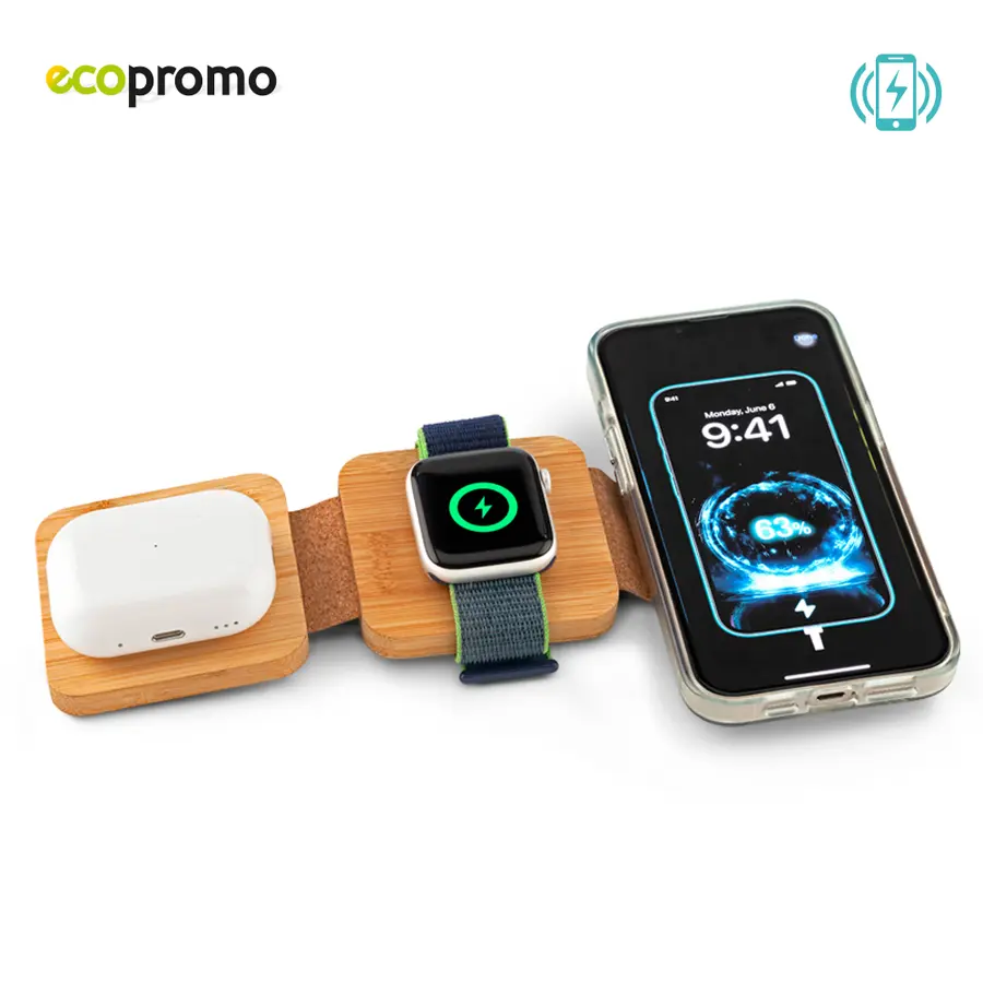 Cargador Inalámbrico Mágnet 3-1 Eco es ideal como regalo corporativo, recuerda que con nosotros puedes personalizar con tu marca, así lograras destacar tu empresa!