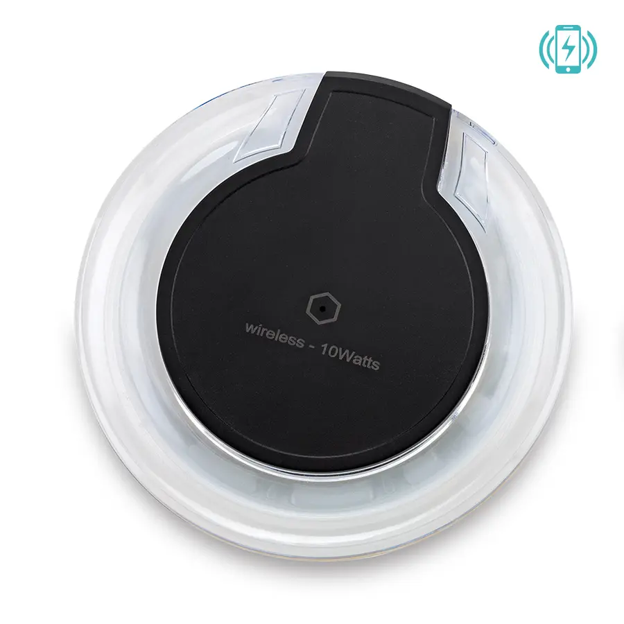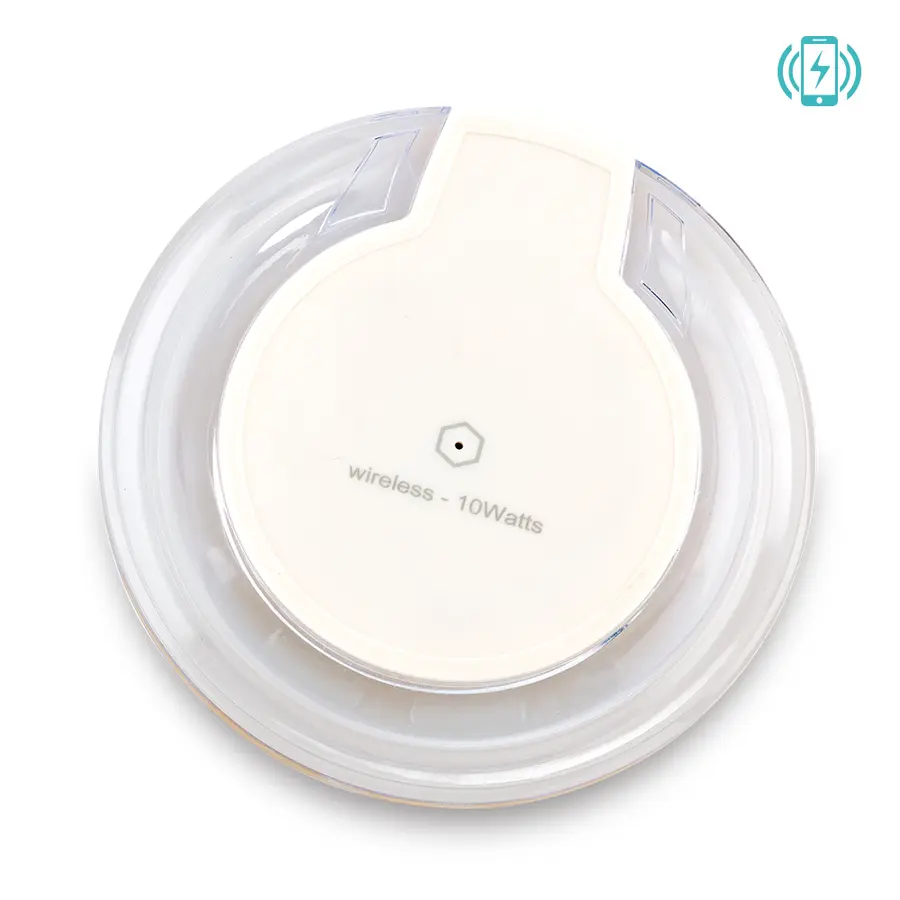 Cargador inalámbrico plástico. Output: 5V, 1A Máx. / 10W. Empaque Caja Individual.