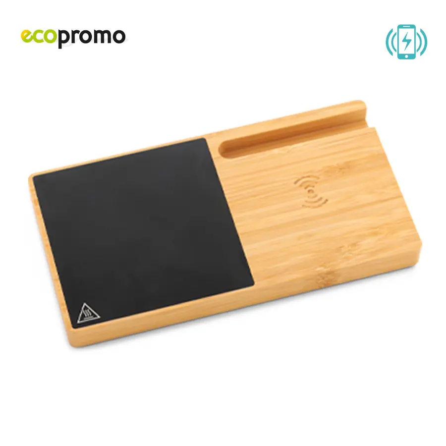 Cargador inalámbrico y calentador de tazas en bambú (mantiene la temperatura). Compatible con tazas de hasta 9 cm. Incluye cable Tipo C para carga. Empaque caja individual.