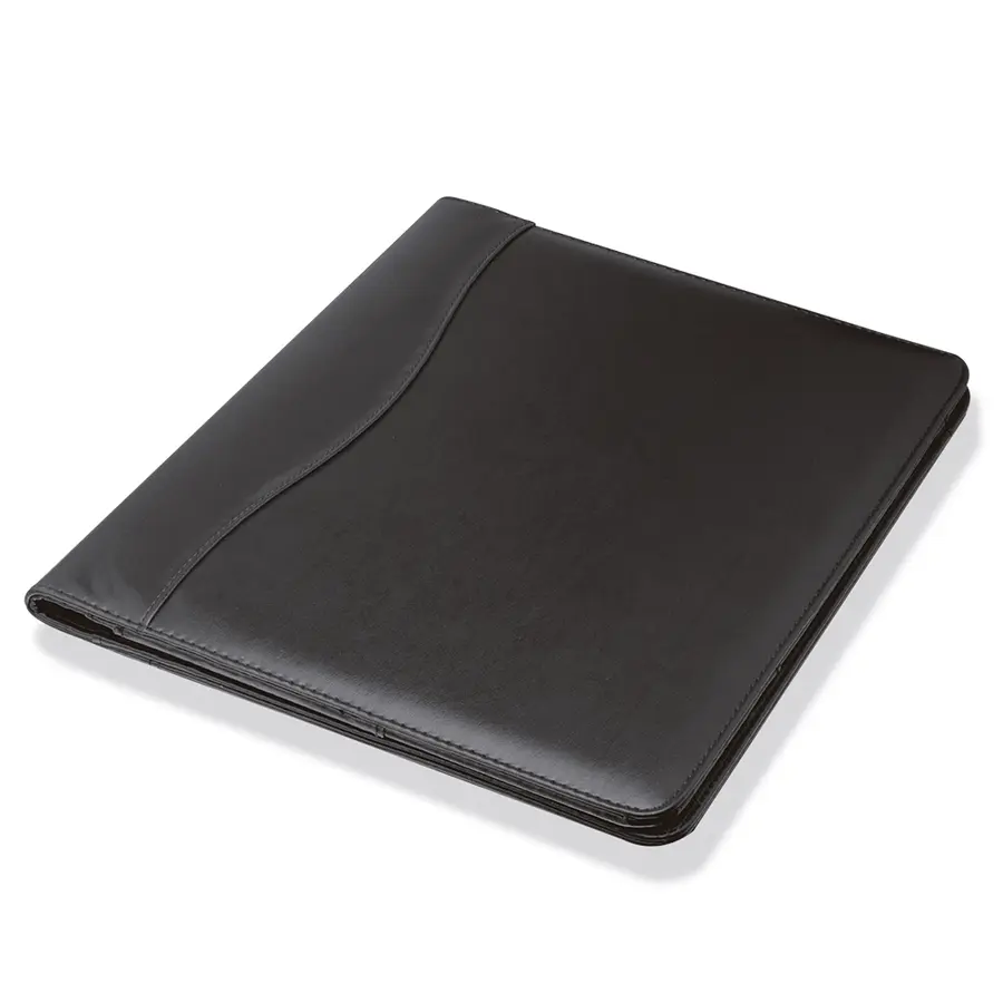 Portadocumentos en PVC con block de notas y cinta portabolígrafos.