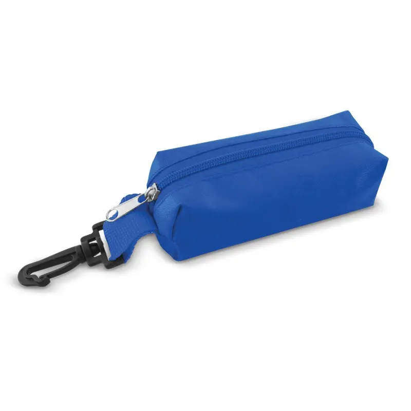 Cartuchera en poliéster con cremallera y mosquetón.
