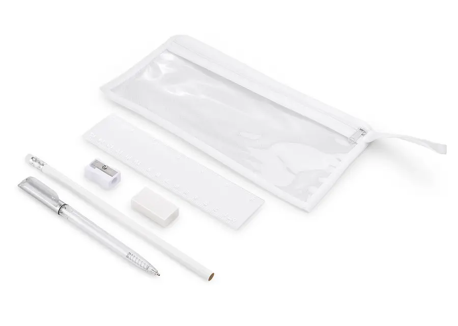 ÁREA DE IMPRESIÓN APROXIMADA: Cartuchera 7 x 5 cm. Lápiz: 4 x 0,5 cm. Bolígrafo: 4 x 0,6 cm. Regla: 6 x 1,5 cm.