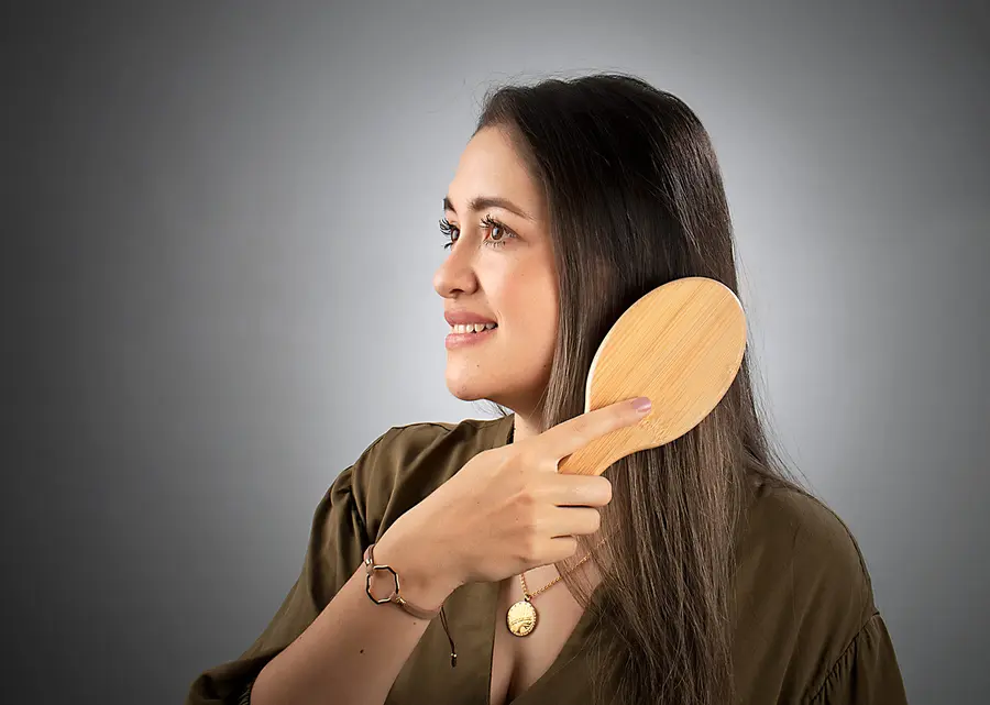 Cepillo para cabello en Bambú natural, anti-friz, punta redonda de facil desenredo e ideal para cabello sensible. No maltrata el cuero cabelludo.